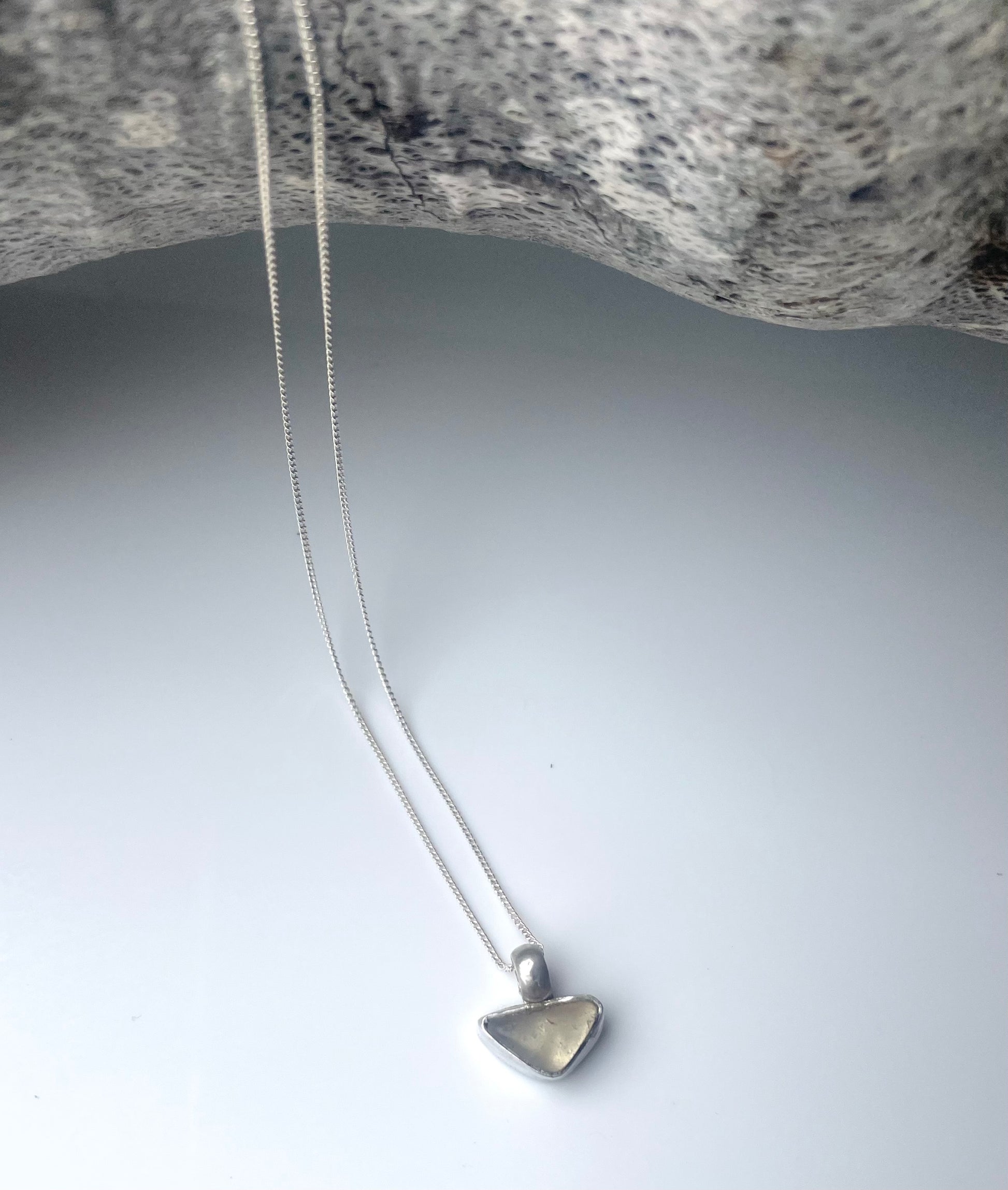 Elevated sea glass necklace in sterling + fine + recycled silver on a sterling silver 48cm chain.